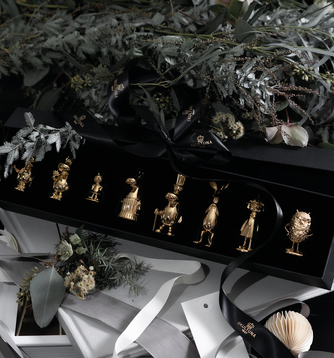 Skultuna describes its Moomin line as “the Moomin figurines of the 2020’s” The first series consisted of eight gold-plated figurines of some of the most beloved characters created by Tove Jansson; Moomintroll, Snorkmaiden, Little My, Moominpappa, Moominmamma, Sniff, Snufkin & Stinky. The figurines are made of plated steel, making them timeless and long-lasting.