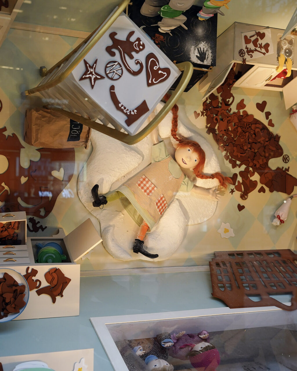 In the shop windows in Stockholm and Gothenburg, visitors can see how Pippi moves in and makes herself at home at NK.