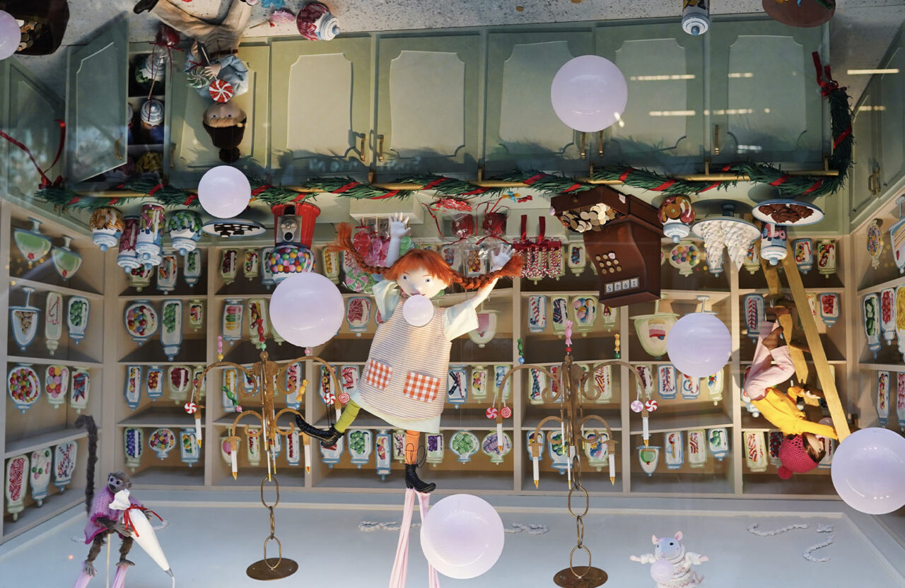 Christmas at Nordiska Kompaniet has officially begun with the reveal of the new holiday shopping windows. This year, NK’s 110th anniversary coincides with Pippi Longstocking’s 80th anniversary, and Pippi takes center stage in the department stores, becoming a playful element in NK’s own environments and expressions.