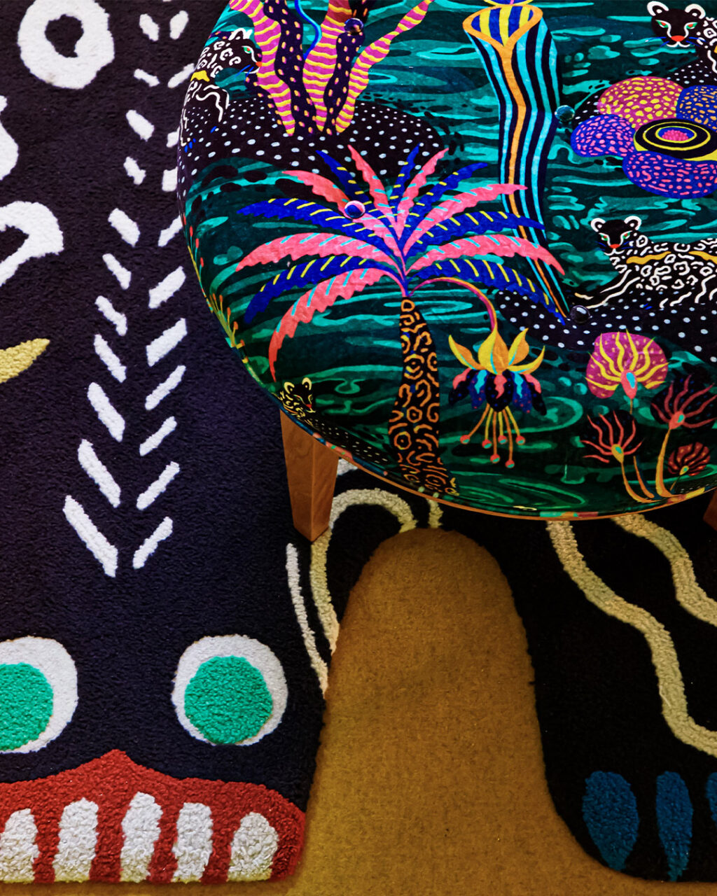 Sam Wilde’s collaboration with Svenskt Tenn began in 2018 with two conceptual textile artworks exhibited at the brand’s historic Strandvägen store. Inspired by Josef Frank’s Beast Rug and Monster Rug, Wilde’s fine art patterns explored imaginative landscapes where the natural world meets the modern.