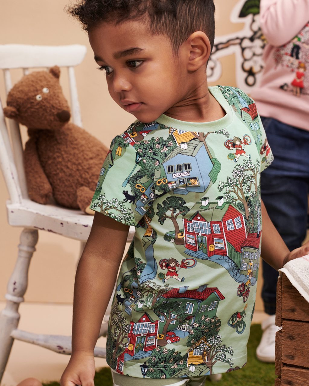 Using Ilon Wikland’s illustrations from some of Astrid Lindgren’s most beloved stories, Polarn O. Pyret first launched a collection with Christmas and winter-themed artwork for children and babies. The second drop was a spring collection for SS23 in a vibrant color scheme. Both collections used Ilon Wikland’s original illustrations from the Astrid Lindgren stories The Children of Noisy Village (Barnen i Bullerbyn) and Lotta on Troublemaker Street (Lotta på Bråkmakargatan). The items included sleepwear, sweatshirts, leggings, and dresses.