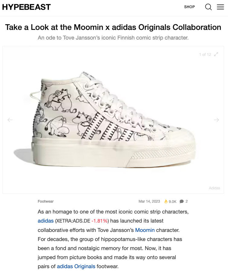 adidas x Moomin was launched in March 2023. A second adidas Originals collection was launched in November 2023.