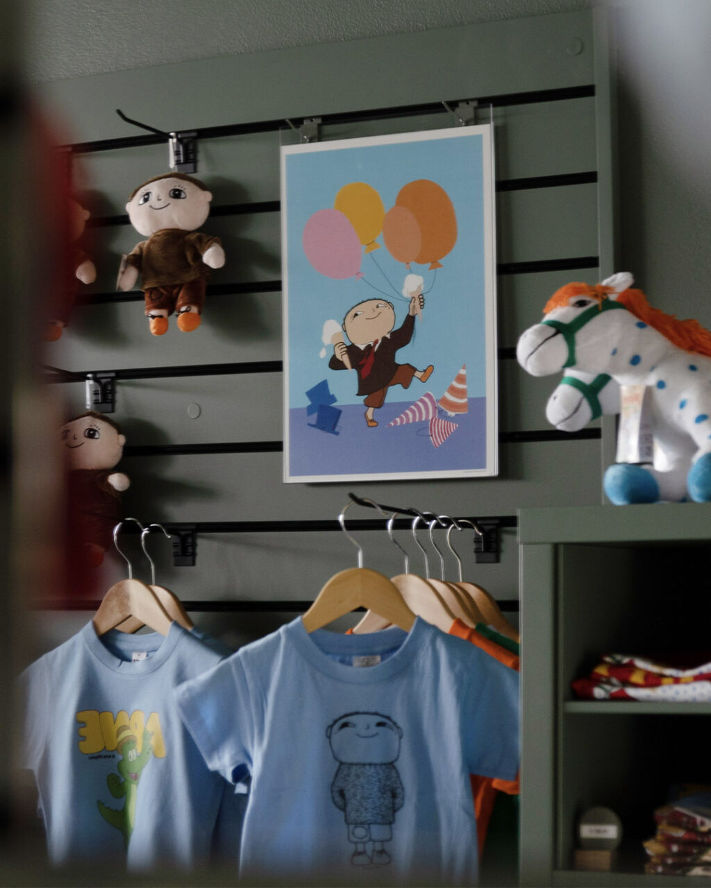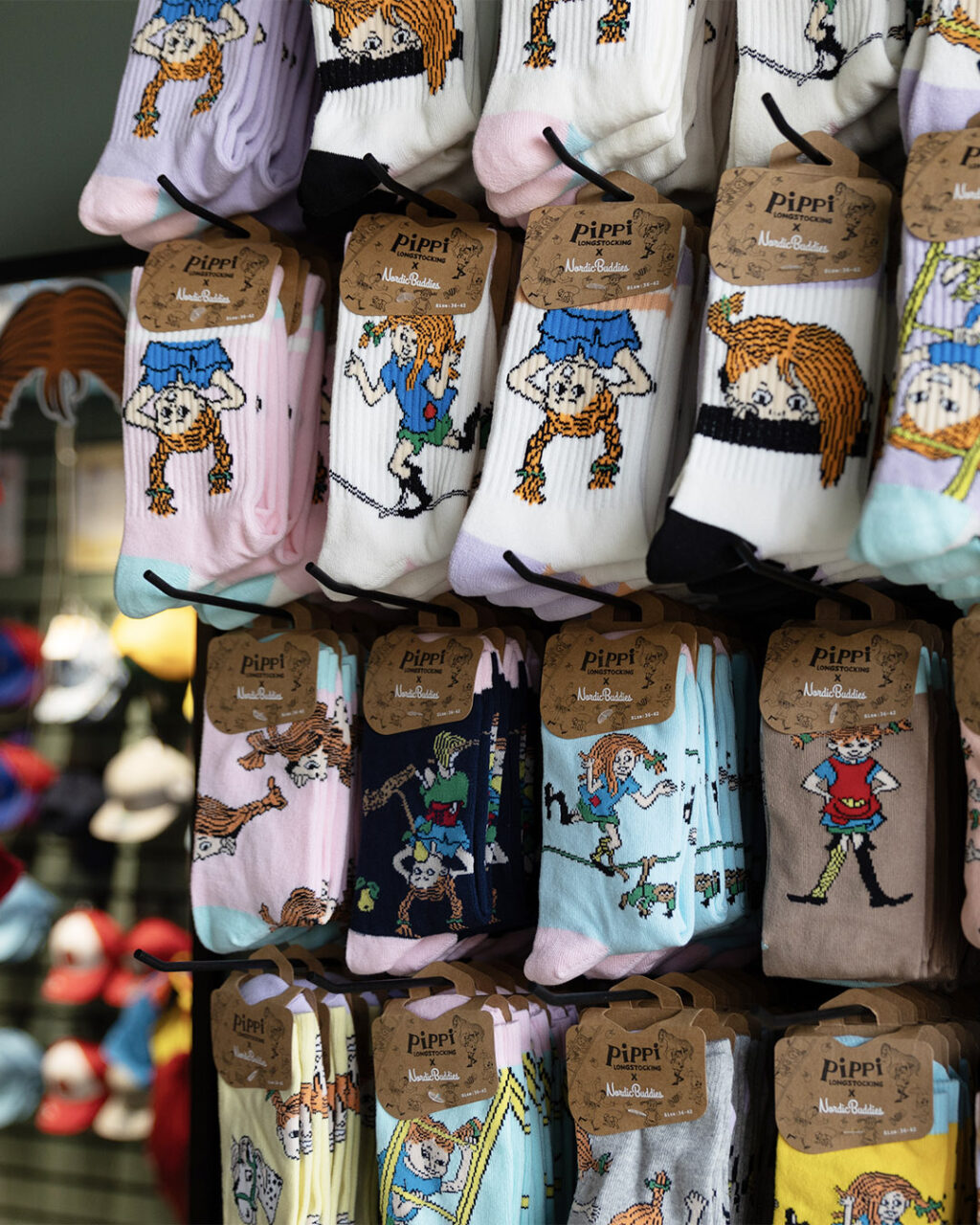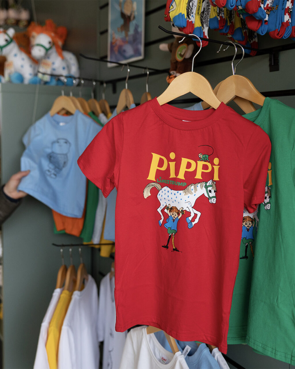 The shop is a colorful celebration of Nordic stories, featuring timeless characters such as Pippi Longstocking, Emil in Lönneberga, Alfie Atkins, Arnie Alligator, Bamse, Maxi & Helium, Karlsson on the Roof, Mamma Moo and Crow, Pettson & Findus, and more.