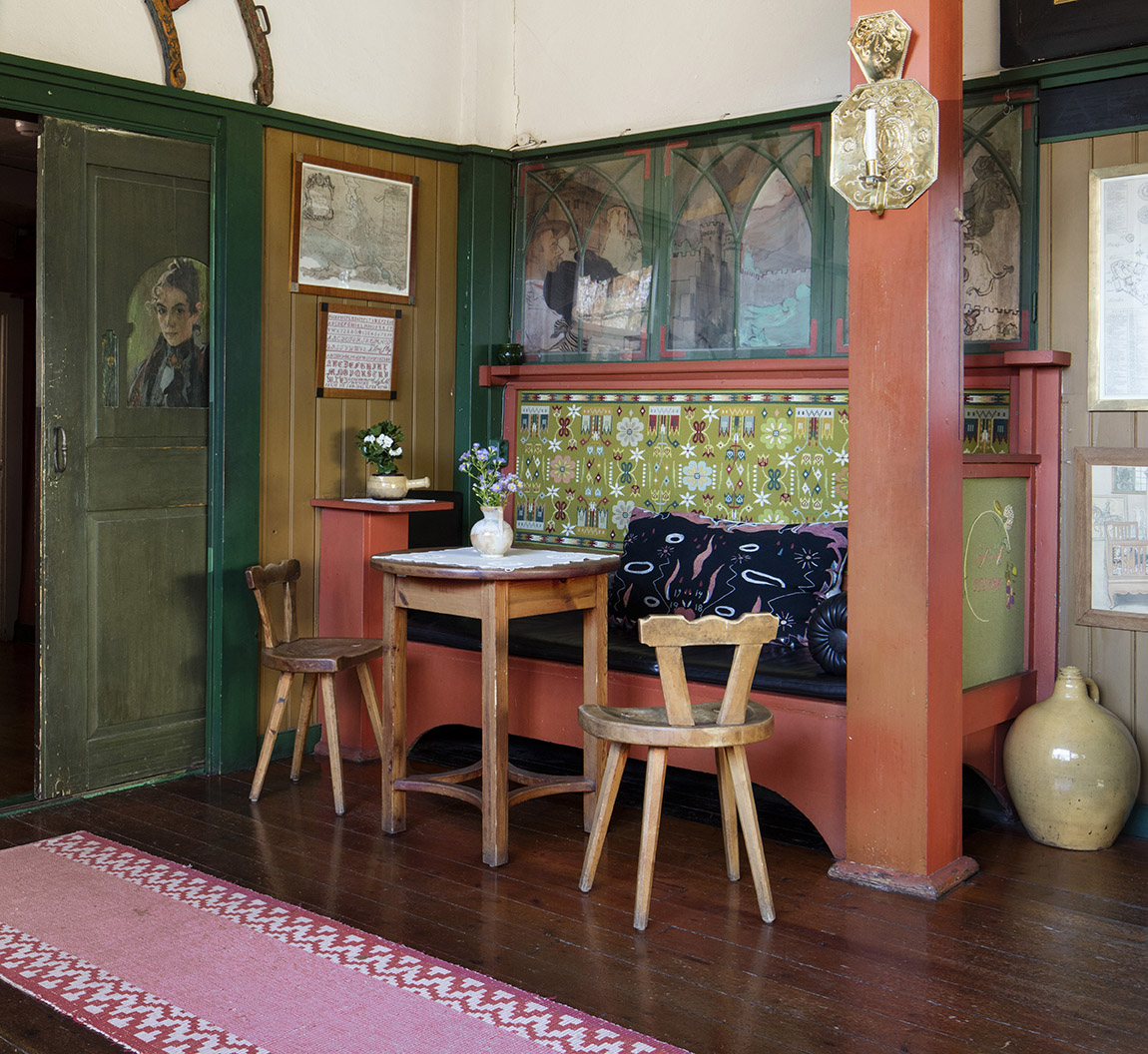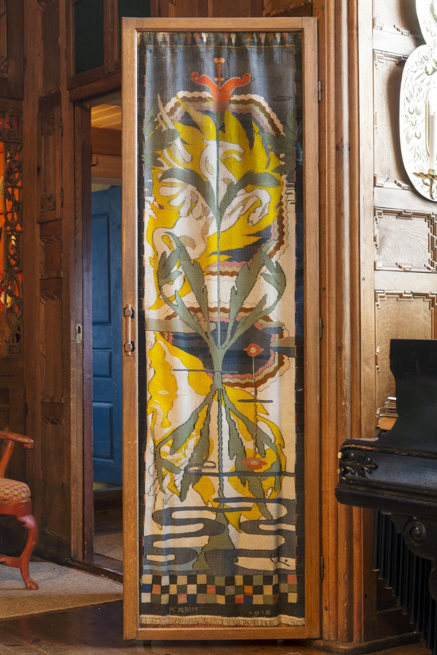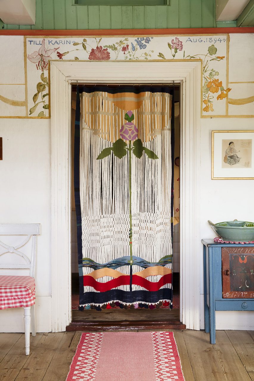 Around the turn of the century in 1900, Karin Larsson (1859-1928) developed a colorful and modern artistry that a hundred years later still fascinates. Karin’s contributions to the prevailing art movements like Art Nouveau, the Arts and Crafts style, and regional folk techniques, are distinguished by her boldness, simplicity, and taste for abstraction. Karin was not afraid to try new techniques as she embroidered, weaved, knitted, and crocheted, often mixed with non-European influences such as Japonism. She also sewed clothes and weaved tapestry.