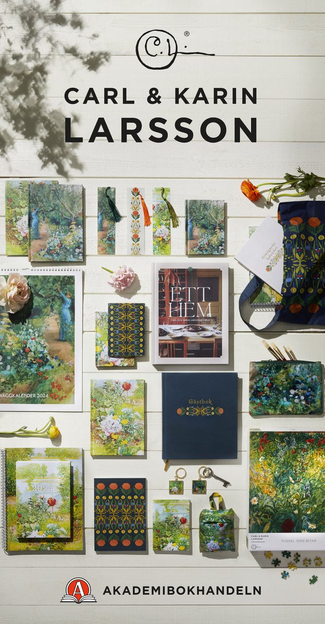 Akademibokhandeln’s big design collaboration of the year: an exclusive collection with a wide range of products with motifs by Carl and Karin Larsson is now available in stores together with the new book ‘Ett Hem: Carl & Karin Larssons värd’.