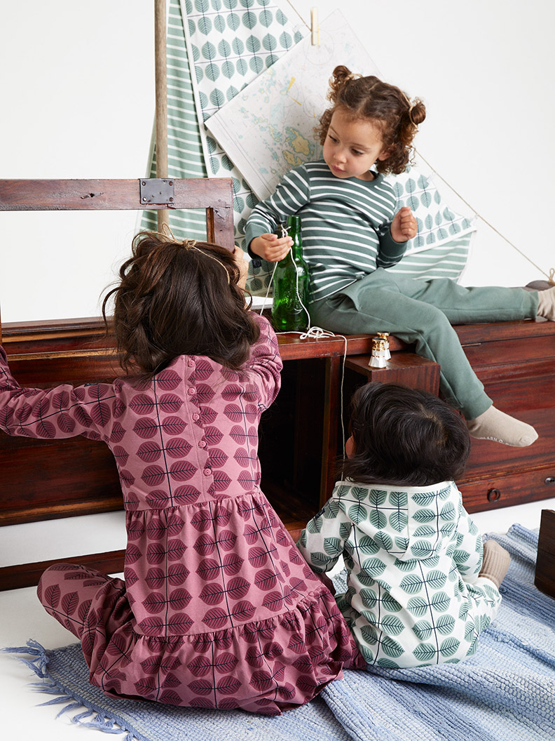 This new limited collection by Polarn O. Pyret uses the iconic print Berså from 1961 and illustrations from the classic children’s book Daniel Doppsko (“Daniel Dipshoe”) by Lennart Hellsing, originally published in 1959. The collection includes everyday wear and nighttime wear for babies, children, and adults and a durable shell jacket for children. All the items are made of soft, organic, and GOTS-certified cotton and the shell jacket is made of recycled polyester.