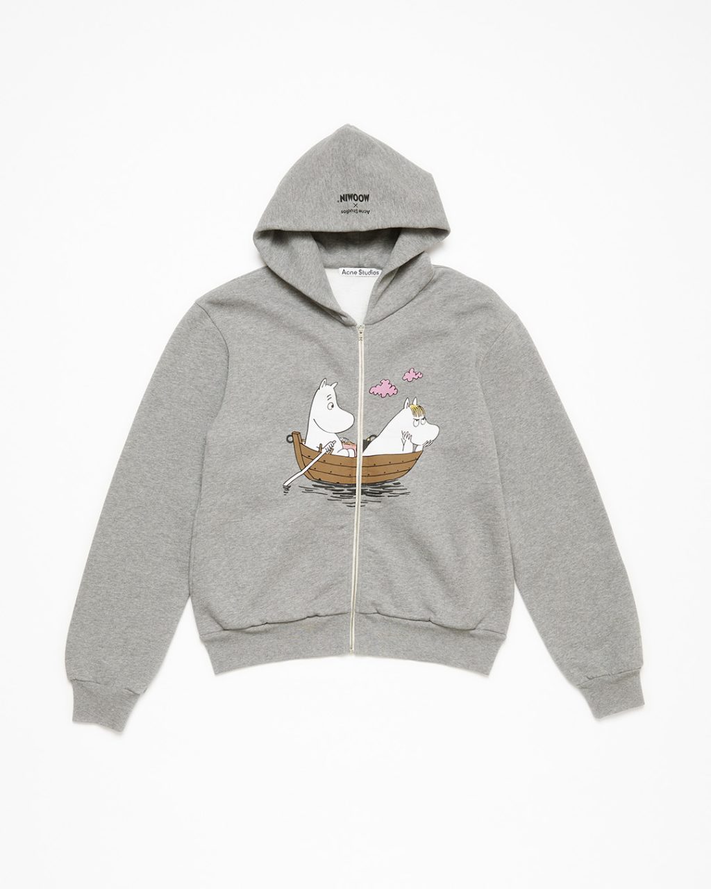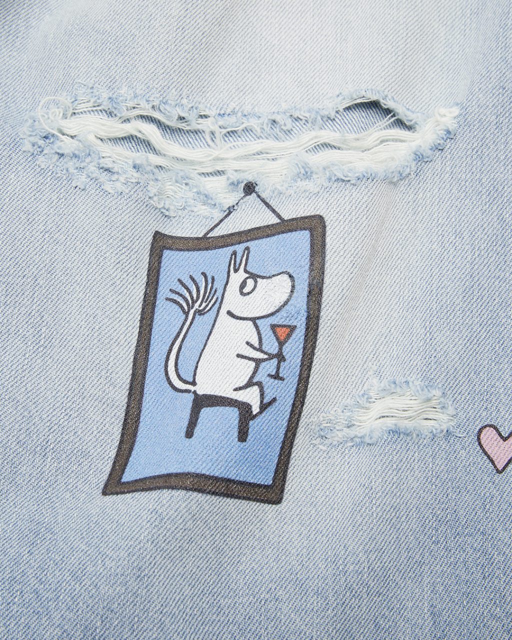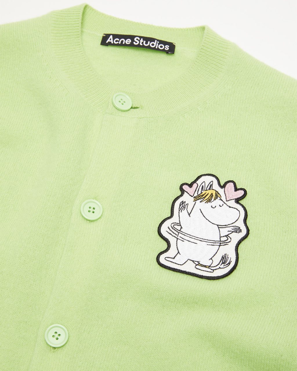In the Acne Studios x Moomin collection, Tove Jansson’s cherished Moomin characters—such as Moomintroll, Snorkmaiden, and Little My—are reimagined across staple pieces in the ‘Face’ collection, from vibrant jersey T-shirts and zip-up hoodies to Acne Studios’ iconic denim. Thoughtfully integrated, Moomin patches replace Acne’s signature ‘Face’ motif on wool cardigans and beanie hats.