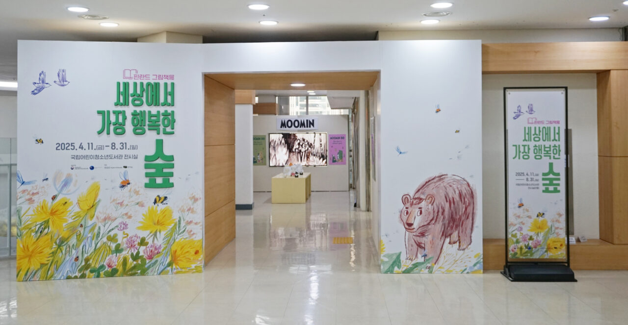 The ongoing exhibition invites visitors to step inside a Finnish forest in the middle of Seoul as it highlights Finnish children’s literature, showcasing a variety of children’s picture books and celebrates the 80th anniversary of Tove Jansson’s Moomin stories. The exhibition is organized by the National Library of Children and Young Adults & Embassy of Finland in Seoul. It runs until the end of August 2025.