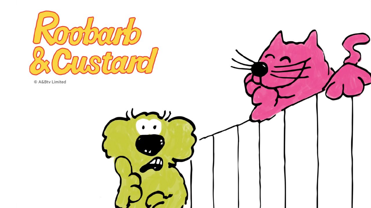 The show was the creation of Grange Calveley. The ever-curious and optimistic Roobarb was, in fact, based on his own Welsh Collie who, on first arriving at the family home, excitedly ran around the lawn before “watering” the rhubarb to get his name! The sarcastic, low-energy pink cat next door, Custard, was the perfect foil for Roobarb’s high jinks and, of course, they were joined by various other characters as the stories are played out in the wide-open spaces of the line-drawn garden.