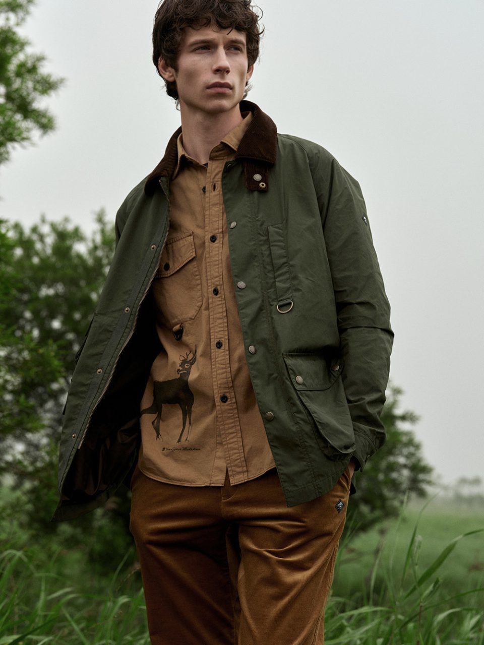 This unique jacket features Teemu Järvi’s artwork printed on the interior lining. Crafted from waxed nylon cotton material with a special coating, it offers a luxurious and textured feel. The jacket is accented with corduroy on the collar and flap pockets.