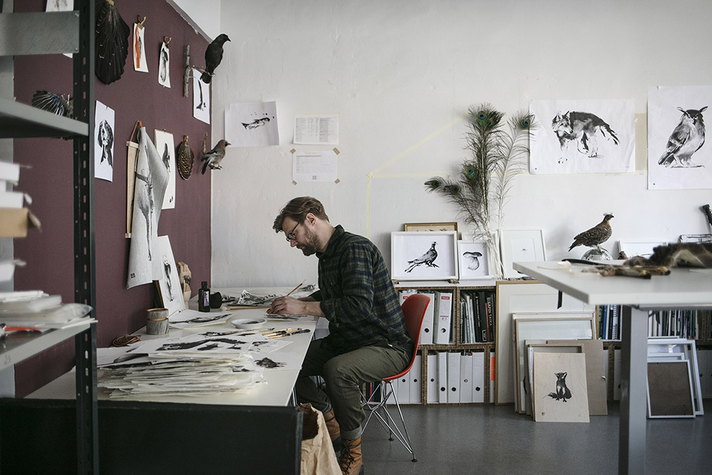 The works of Teemu Järvi derive from the artist’s lifelong love of nature. A ceaseless explorer of Finnish woods and lakes, Järvi is familiar with the wildlife through first-hand experience. He works with traditional tools such as the reed pen, creating works of art that transport us from our hectic urban existence to the soothing calm of primeval wilderness.