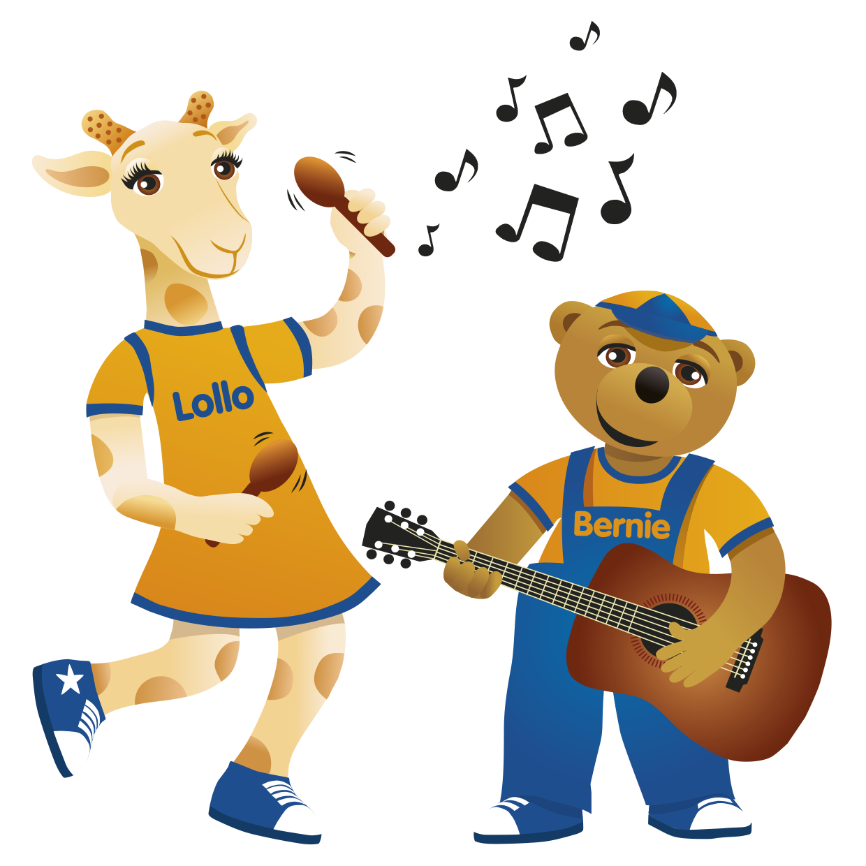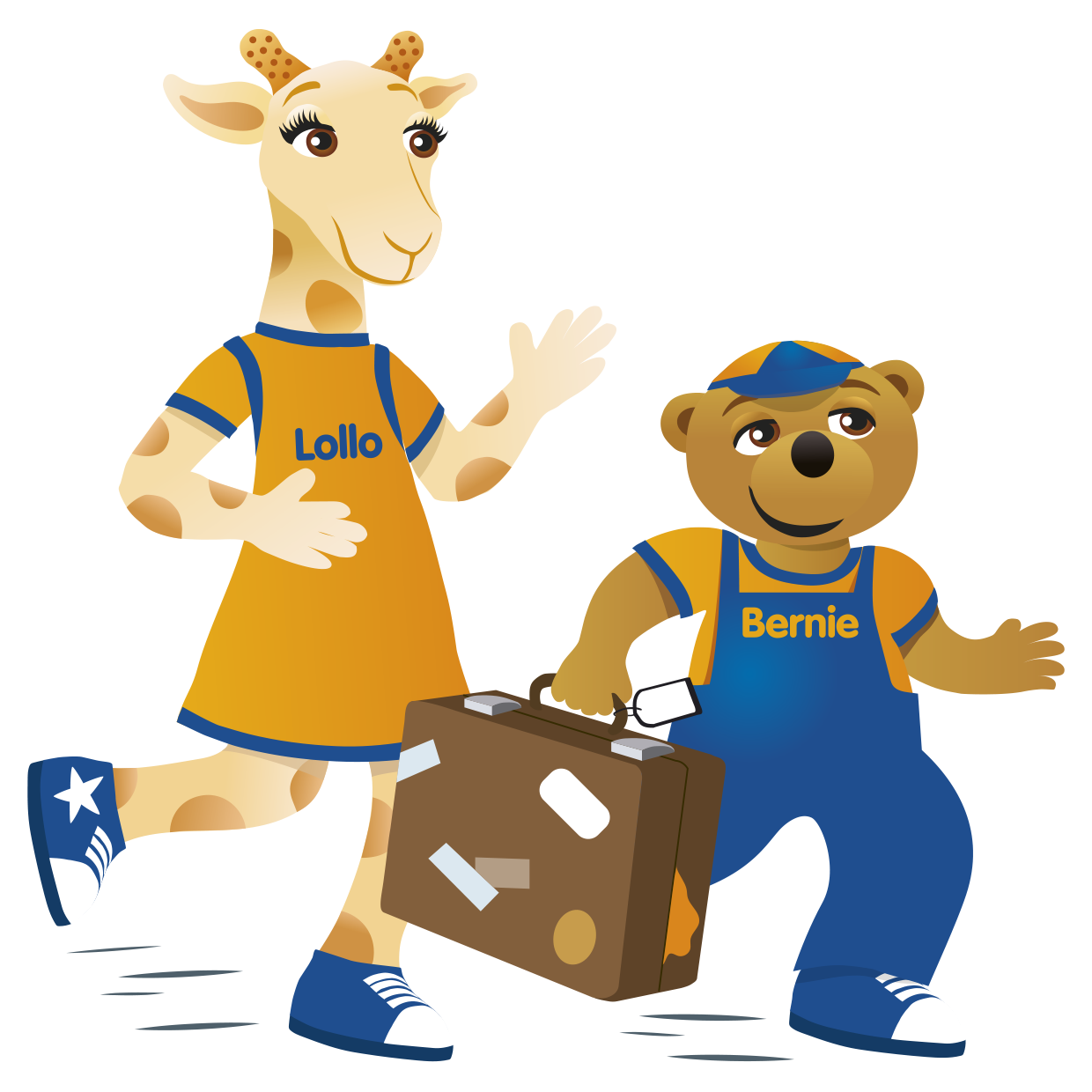 Lollo is a giraffe born in Africa. She is competitive, creative and loves vegetarian food. Because of her long neck she can see very far, and it always makes her eager to go on adventures and learn new things. Bernie is a bear born near the Polar Circle. He‘s wise, caring and loves to teach. He‘s full of energy, but a bit clumsy when his round belly gets in his way.