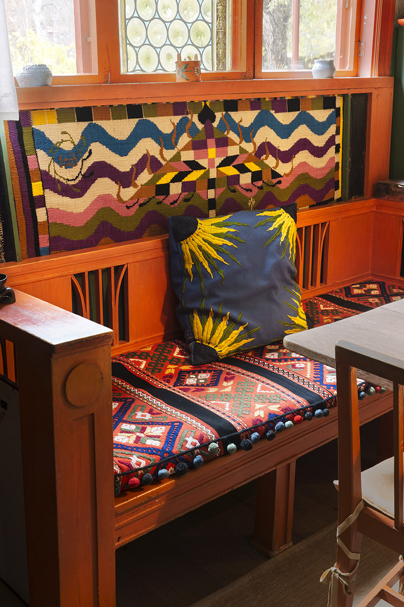 Around the turn of the century in 1900, Karin Larsson (1859-1928) developed a colorful and modern artistry that a hundred years later still fascinates. Karin’s contributions to the prevailing art movements like Art Nouveau, the Arts and Crafts style, and regional folk techniques, are distinguished by her boldness, simplicity, and taste for abstraction. Karin was not afraid to try new techniques as she embroidered, weaved, knitted, and crocheted, often mixed with non-European influences such as Japonism. She also sewed clothes and weaved tapestry.